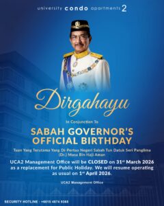 NewsStay informed and stay connected with us. SABAH GOVERNOR’S BIRTHDAY Read More » 27/03/2026 SELAMAT HARI RAYA AIDILFITRI Read More » 19/03/2026 OPERATION HOURS FASTING SEASON Read More » 13/02/2026 CHINESE NEW YEAR 2026 Read More » 27/01/2026 Christmas & Happy new year Read More » 17/12/2025 DEEPAVALI PUBLIC HOLIDAY 2025 Read More » 20/10/2025 Load More